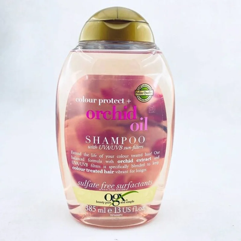 شامپو فاقد سولفات او جی ایکس حاوی روغن ارکیده محصولی از برند آمریکایی او جی ایکساست. این محصول موهای شما را براق و درخشان می کند و از رنگ آن محافظت می نماید. این شامپو، خاصیت مرطوب کنندگی و آبرسانی به موها را دارد.وجود فیلترهای UVA و UVB در فرمولاسیون شامپو فاقد سولفات او جی ایکس حاوی روغن